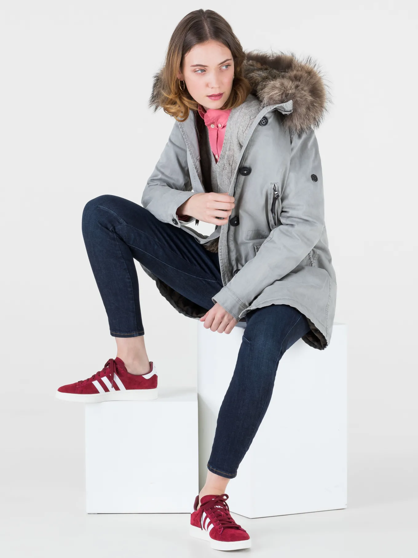 Unser Model misst 179 cm und trägt Grösse 27/32.