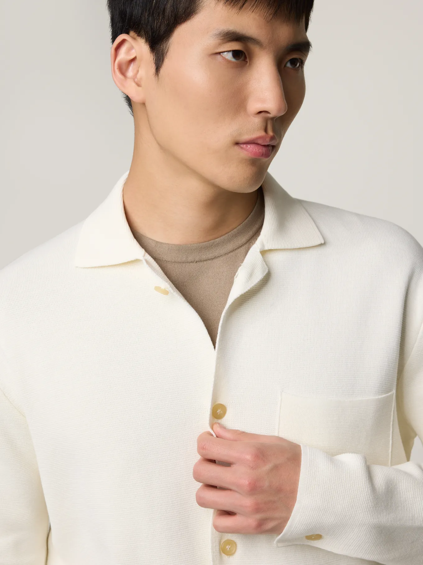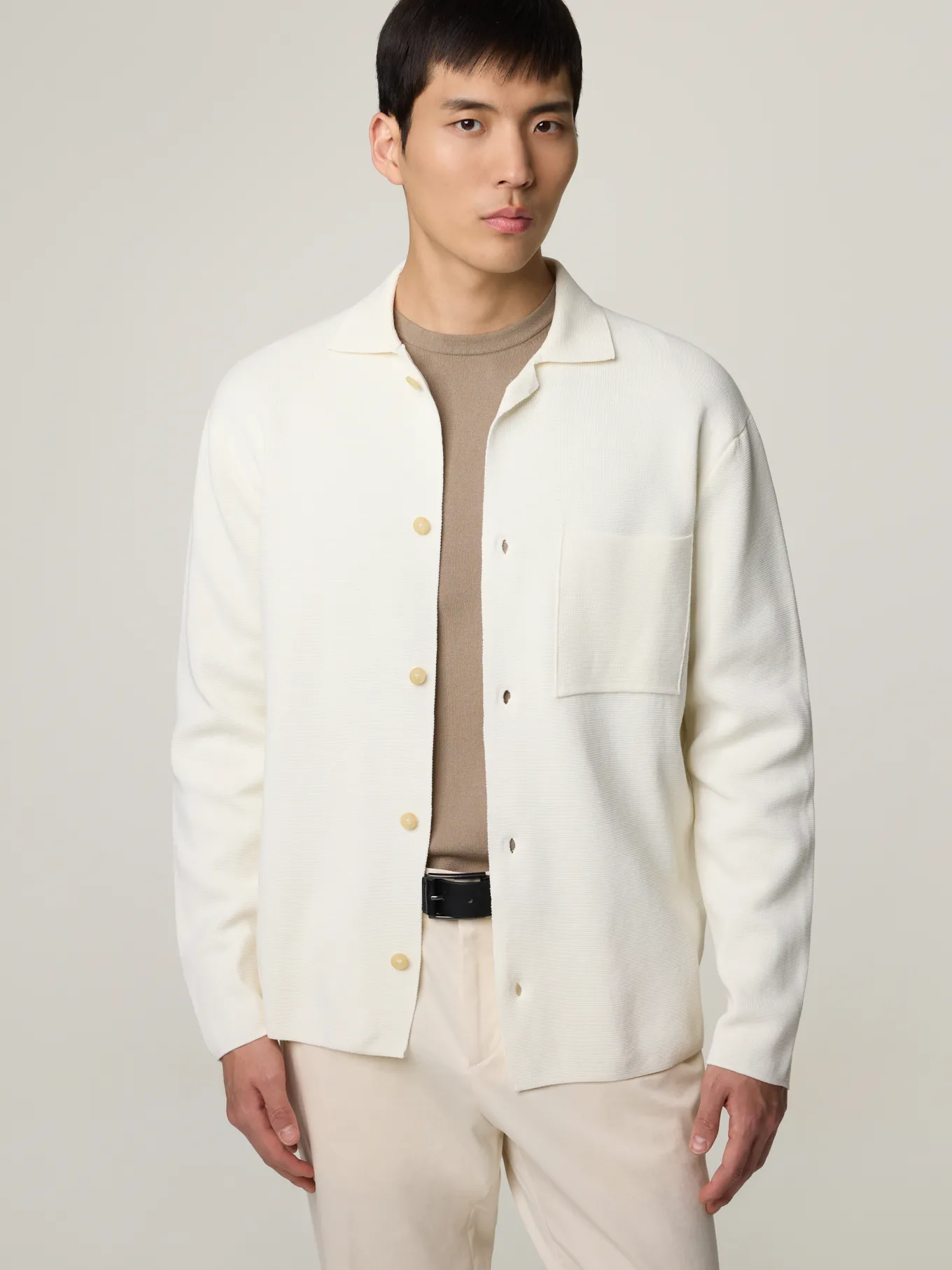 Unser Model misst 190 cm und trägt Grösse 50.