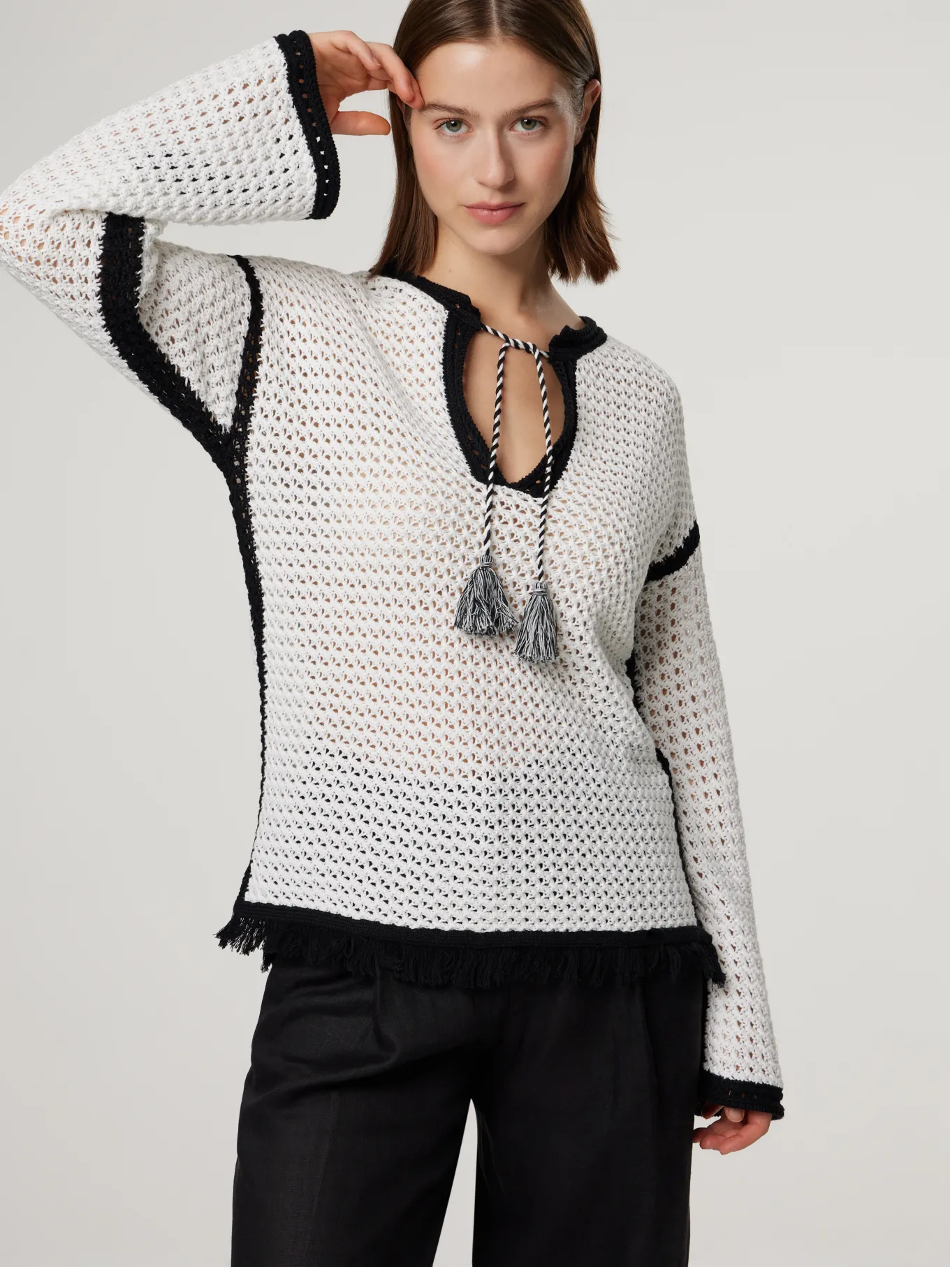 Unser Model misst 176 cm und trägt Grösse 36.