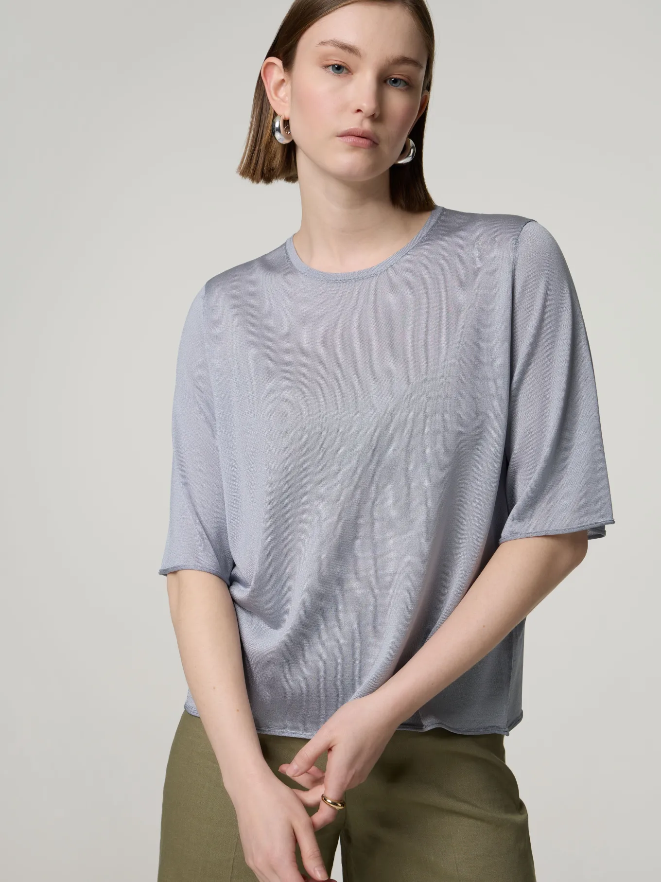 Unser Model misst 174 cm und trägt Grösse S.
