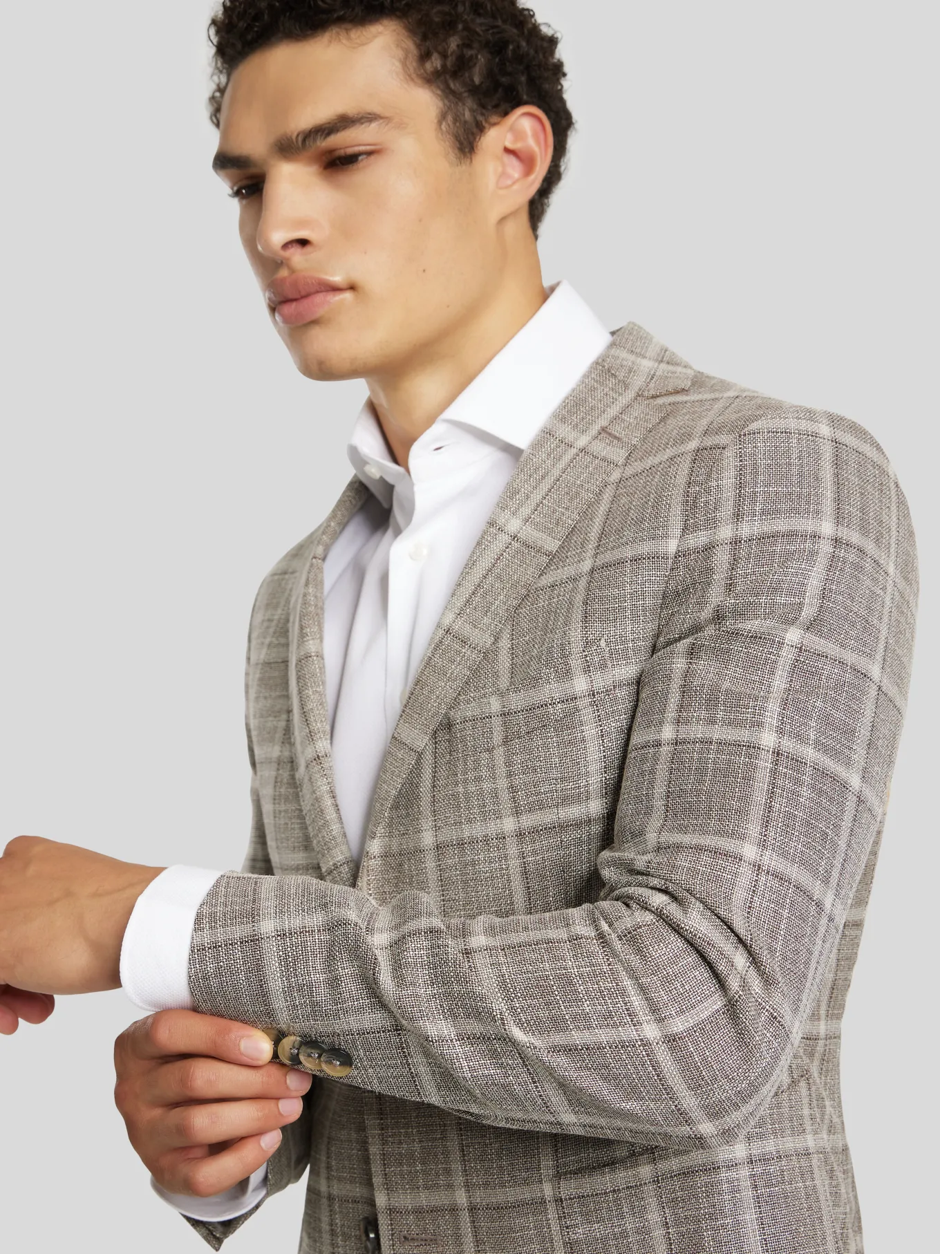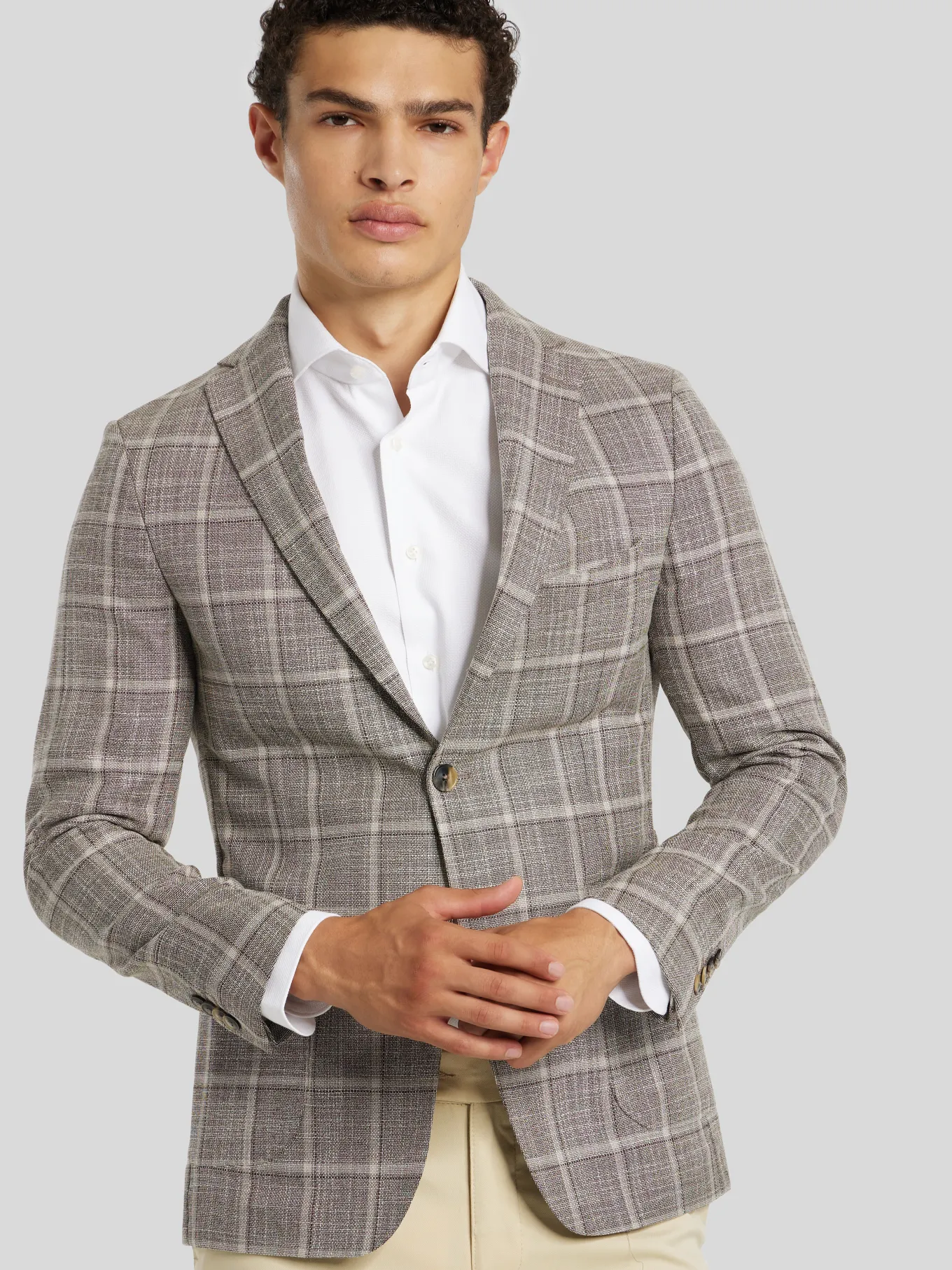 Unser Model misst 187 cm und trägt Grösse 48.
