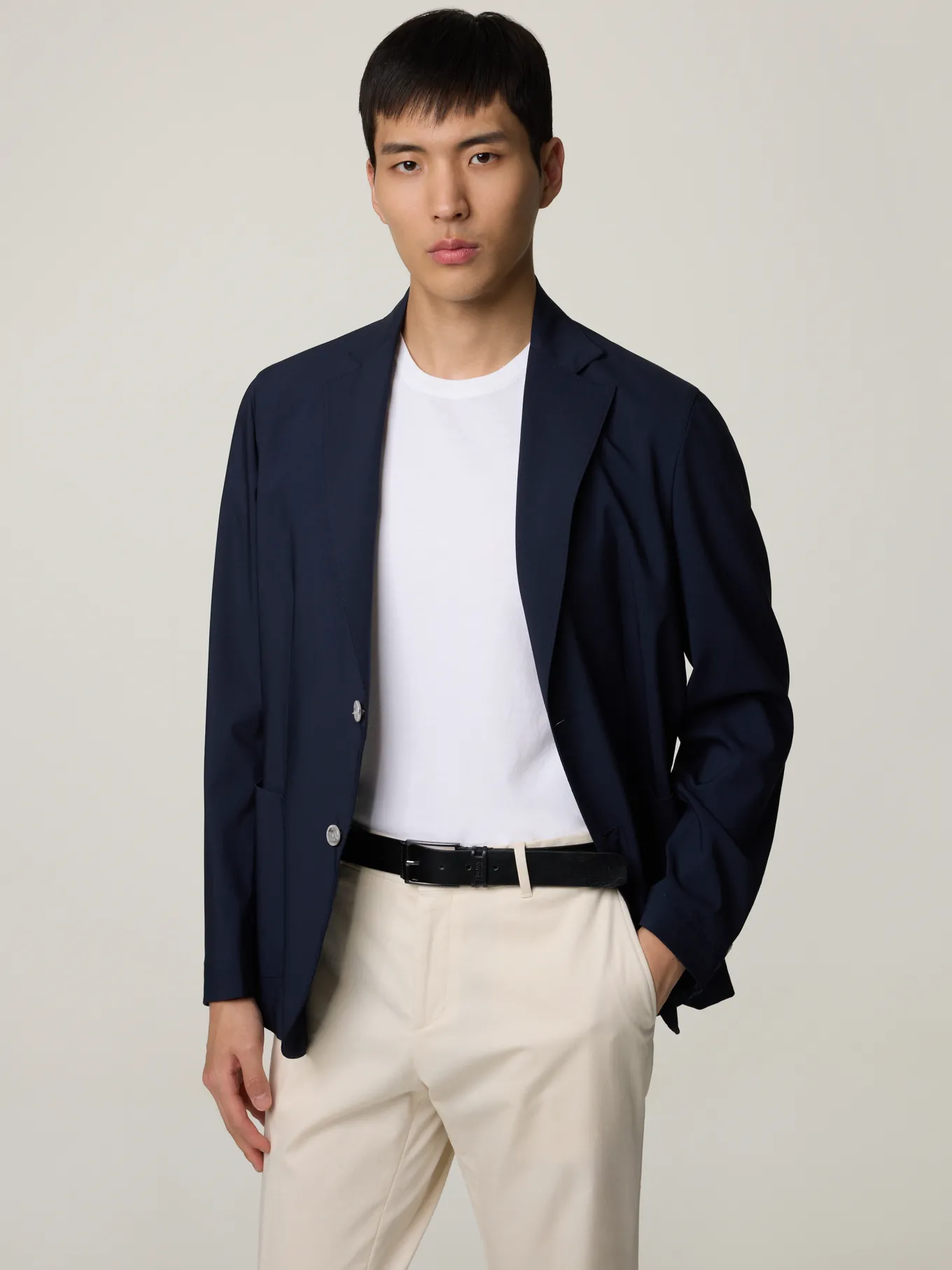 Unser Model misst 186 cm und trägt Grösse 50.