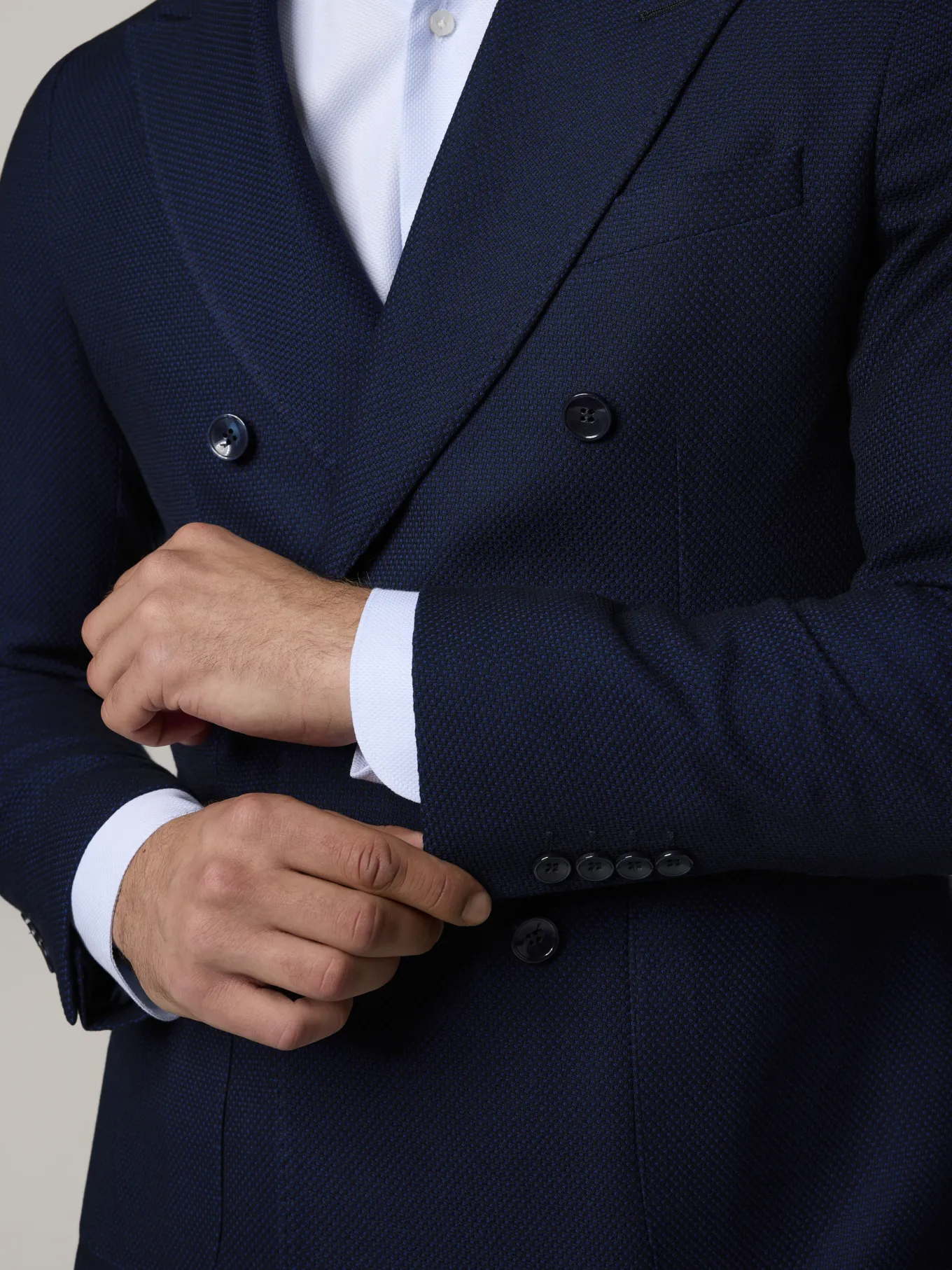 Unser Model misst 187 cm und trägt Grösse 48.