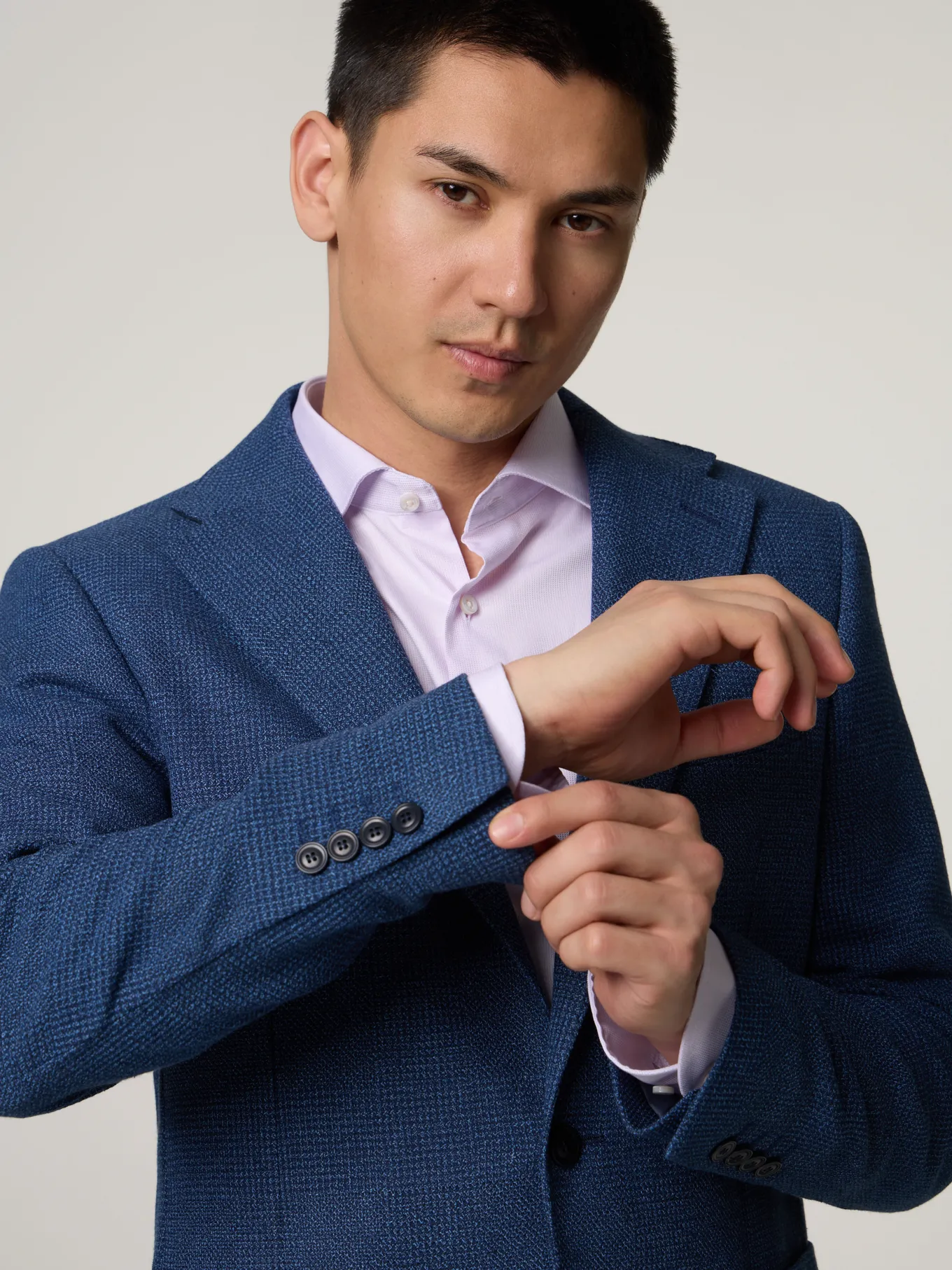 Unser Model misst 185 cm und trägt Grösse 48.