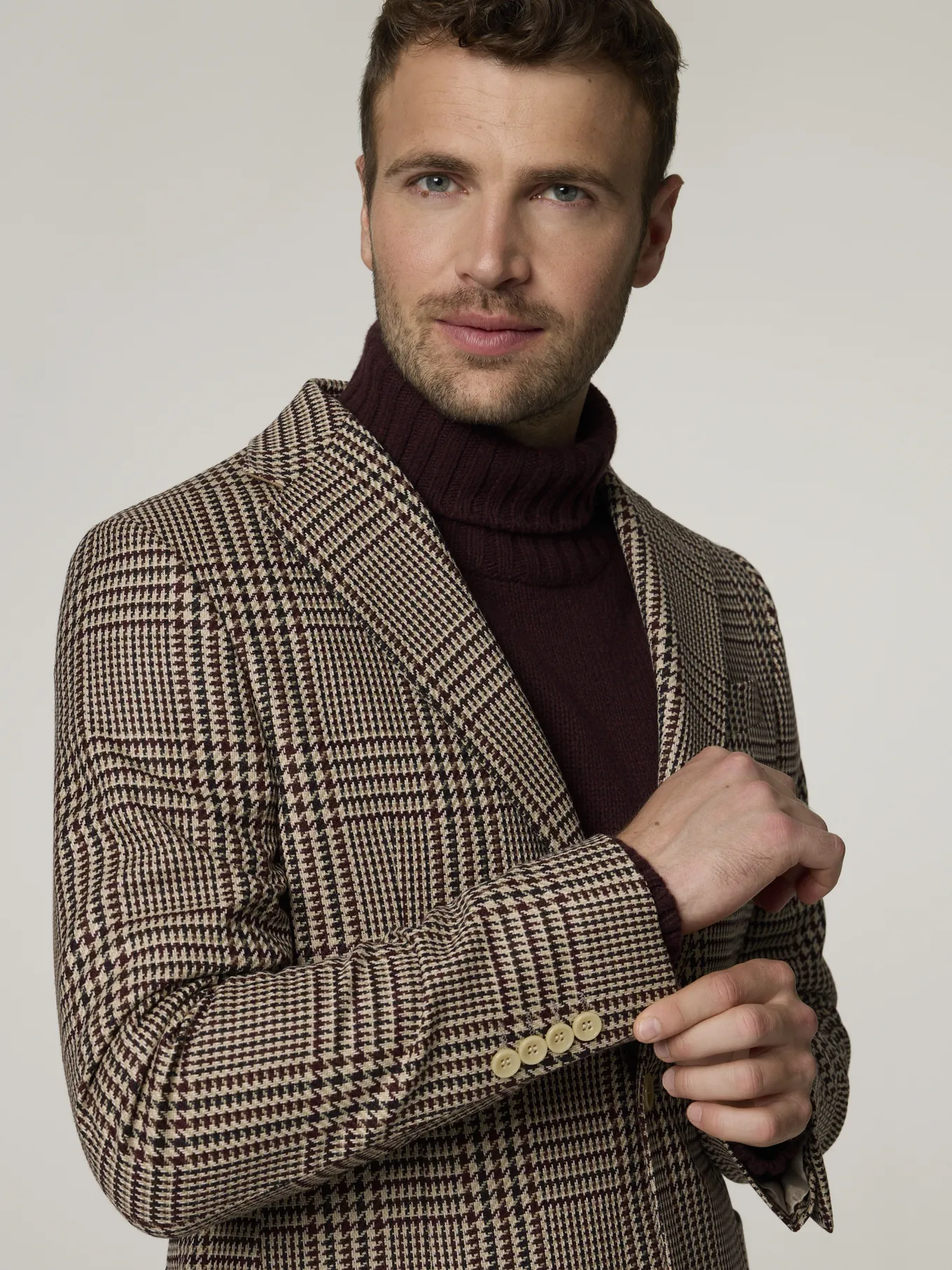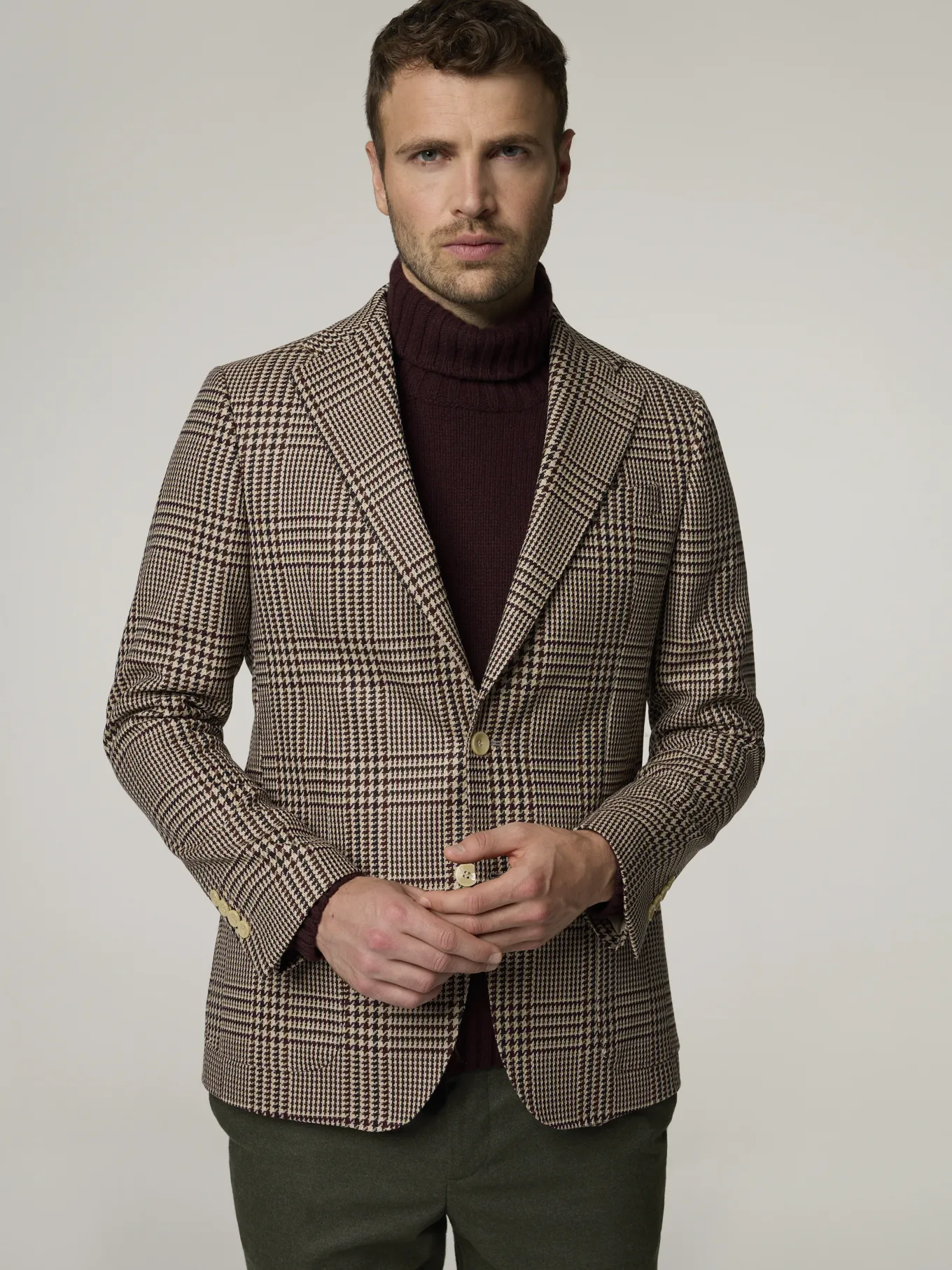 Unser Model misst 187 cm und trägt Grösse 50.