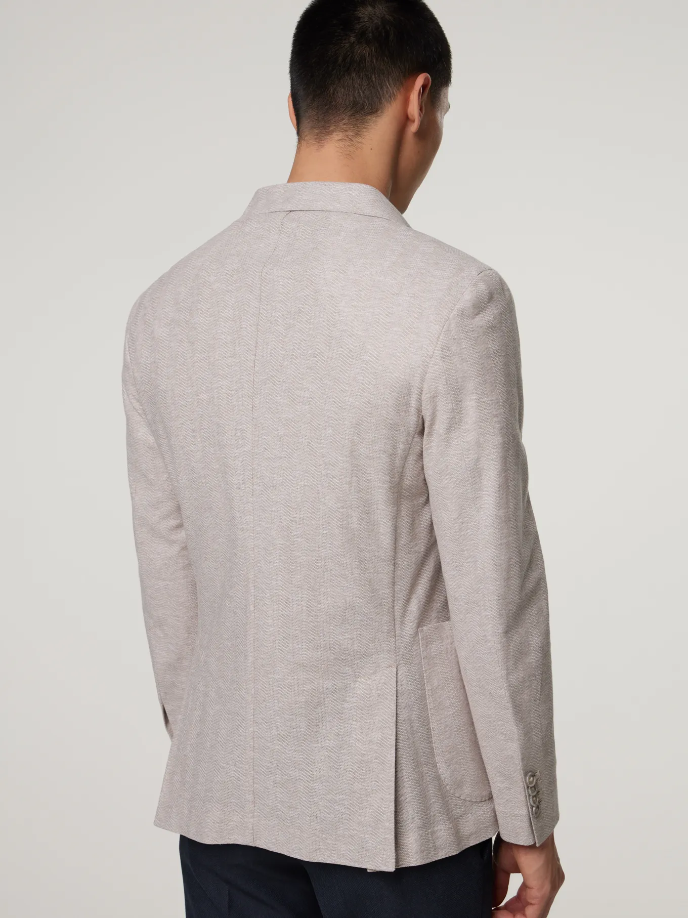 Unser Model misst 187 cm und trägt Grösse 48.