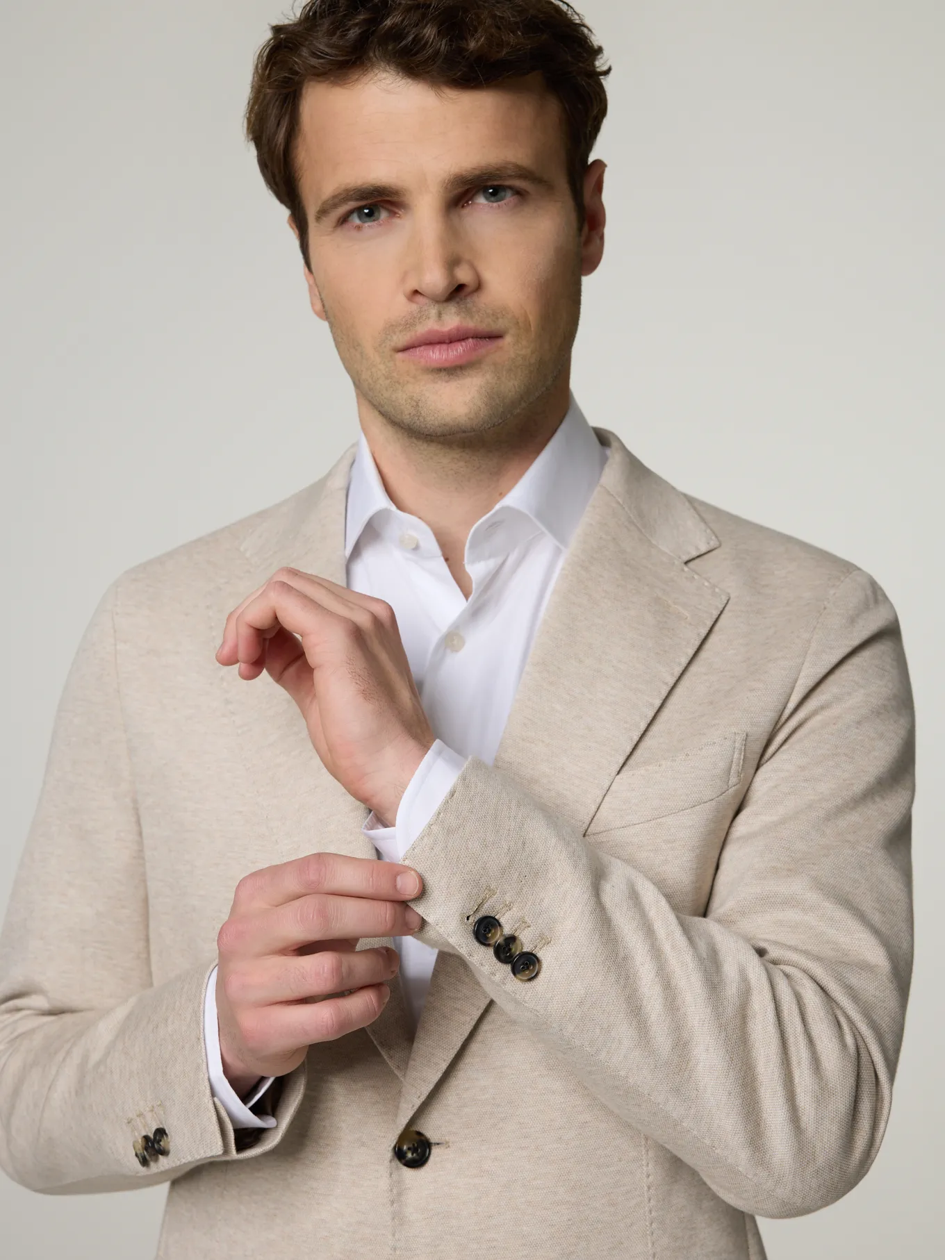 Unser Model misst 186 cm und trägt Grösse 50.