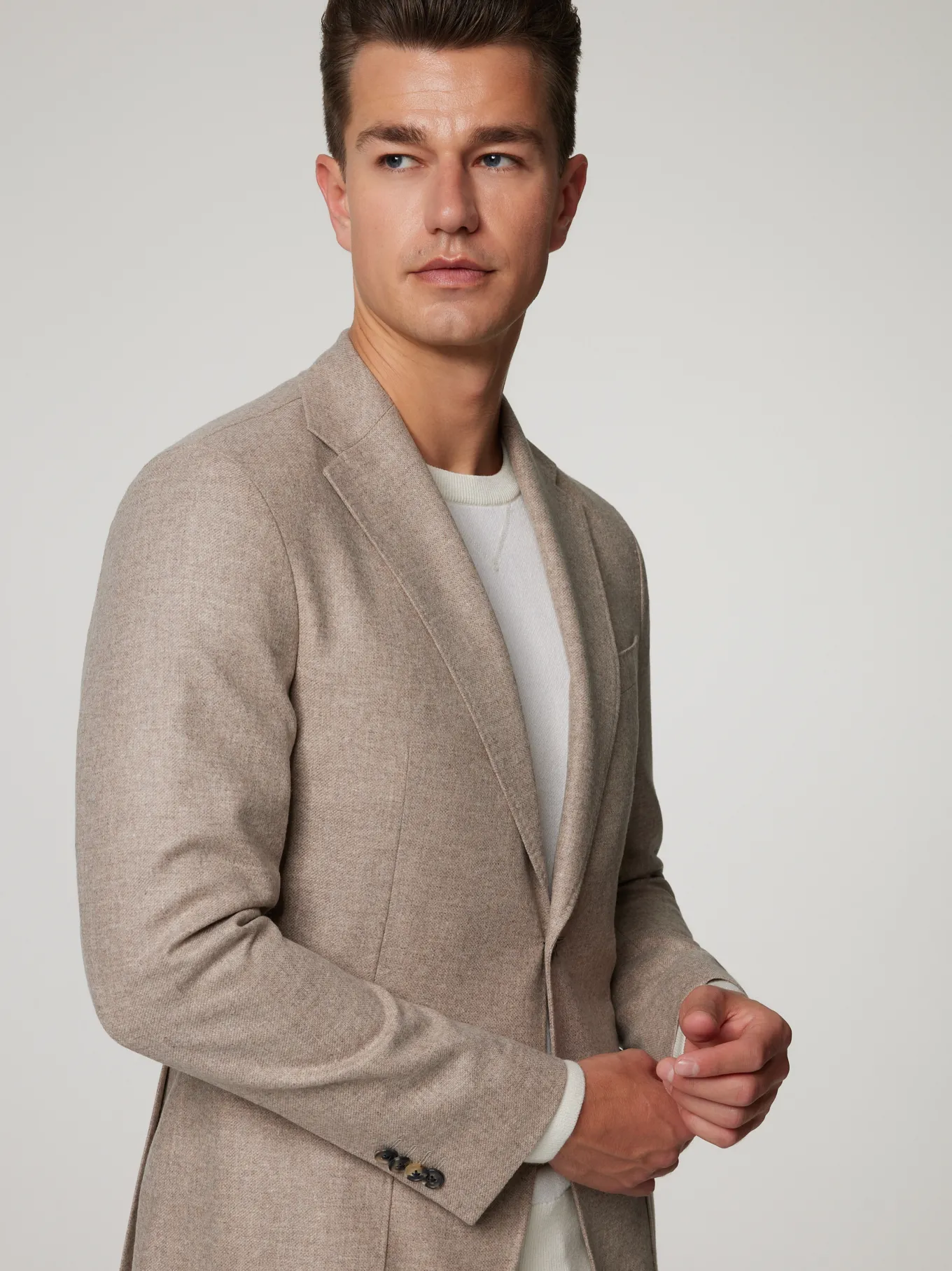 Unser Model misst 187 cm und trägt Grösse 48.