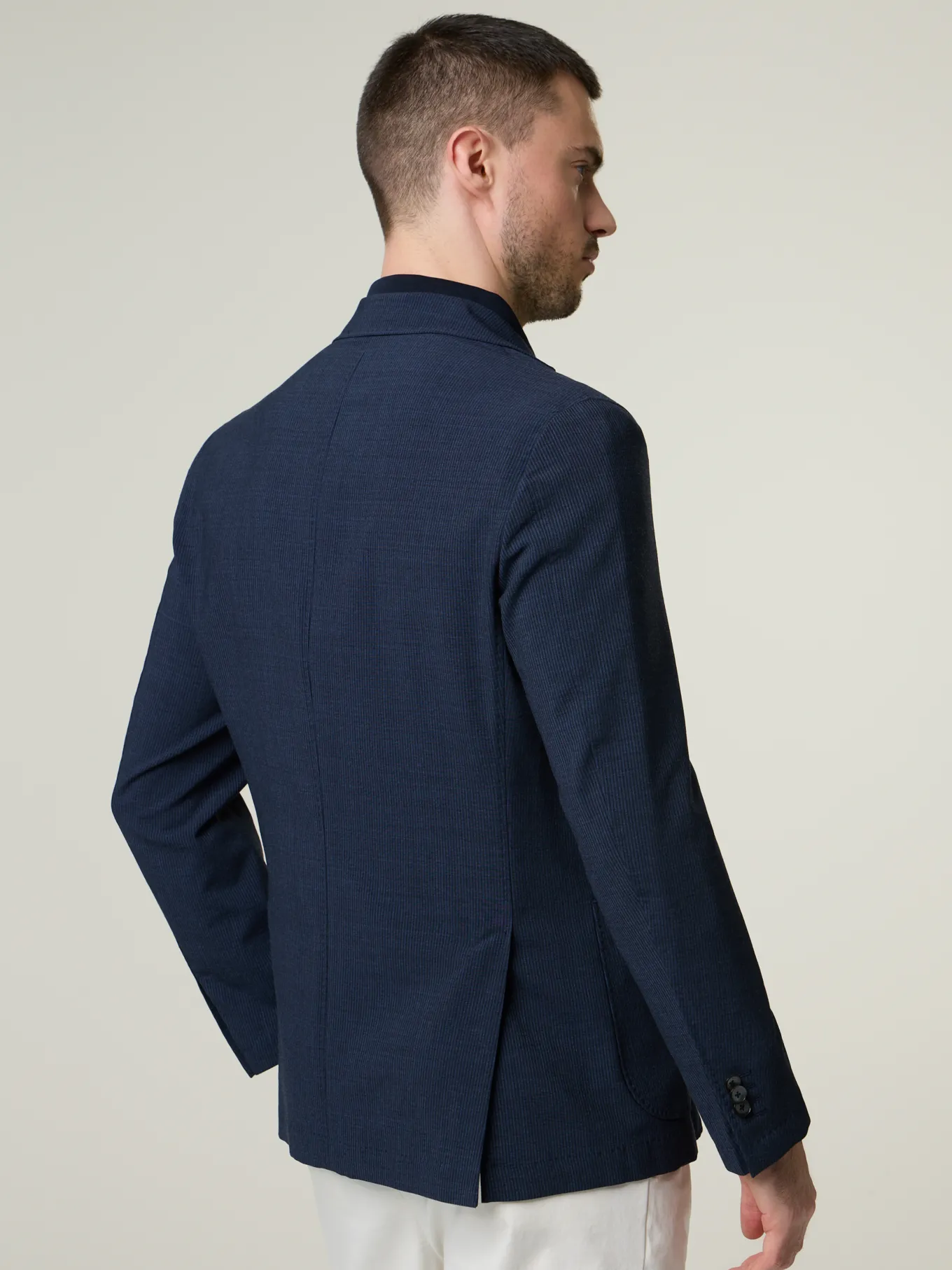 Unser Model misst 187 cm und trägt Grösse 50.