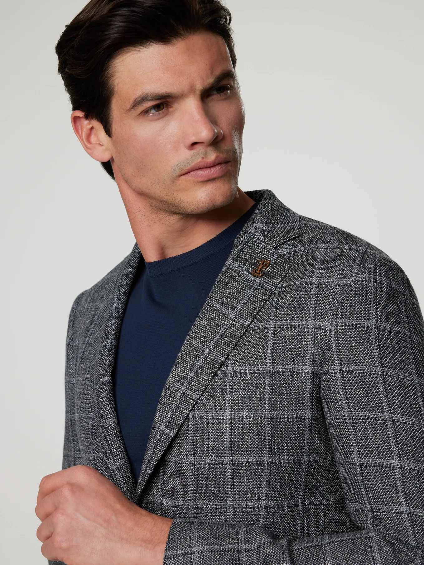 Unser Model misst 187 cm und trägt Grösse 50.