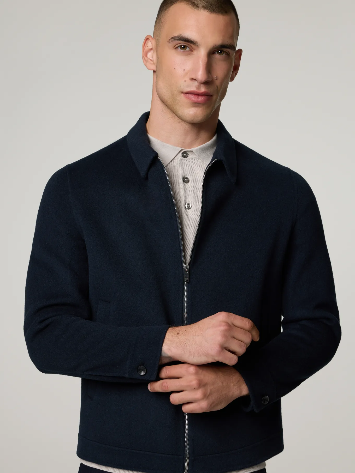 Unser Model misst 187 cm und trägt Grösse 48.